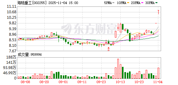 海陆重工(维权)今日涨停,全天换手率15.05%,成交额10.36亿元,振幅2.76%。龙虎榜数据显示,深股通净买入3550.45万元,营业部席位合计净卖出2235.99万元。
